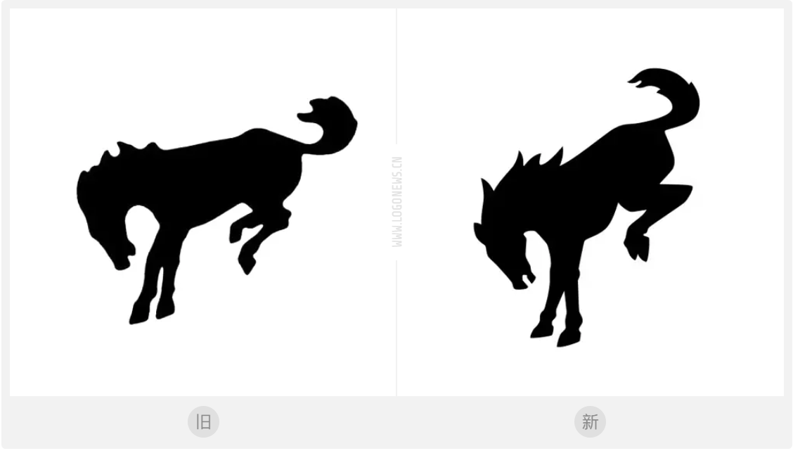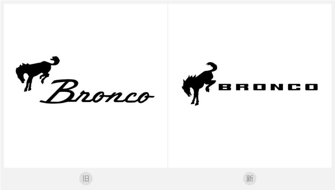 重新设计的Bronco官方LOGO保留了那匹标志性的野马剪影,与停产前使用的LOGO相比,2019版本马的身子略微向前倾斜,所以看起来两只后蹄踢得更高。