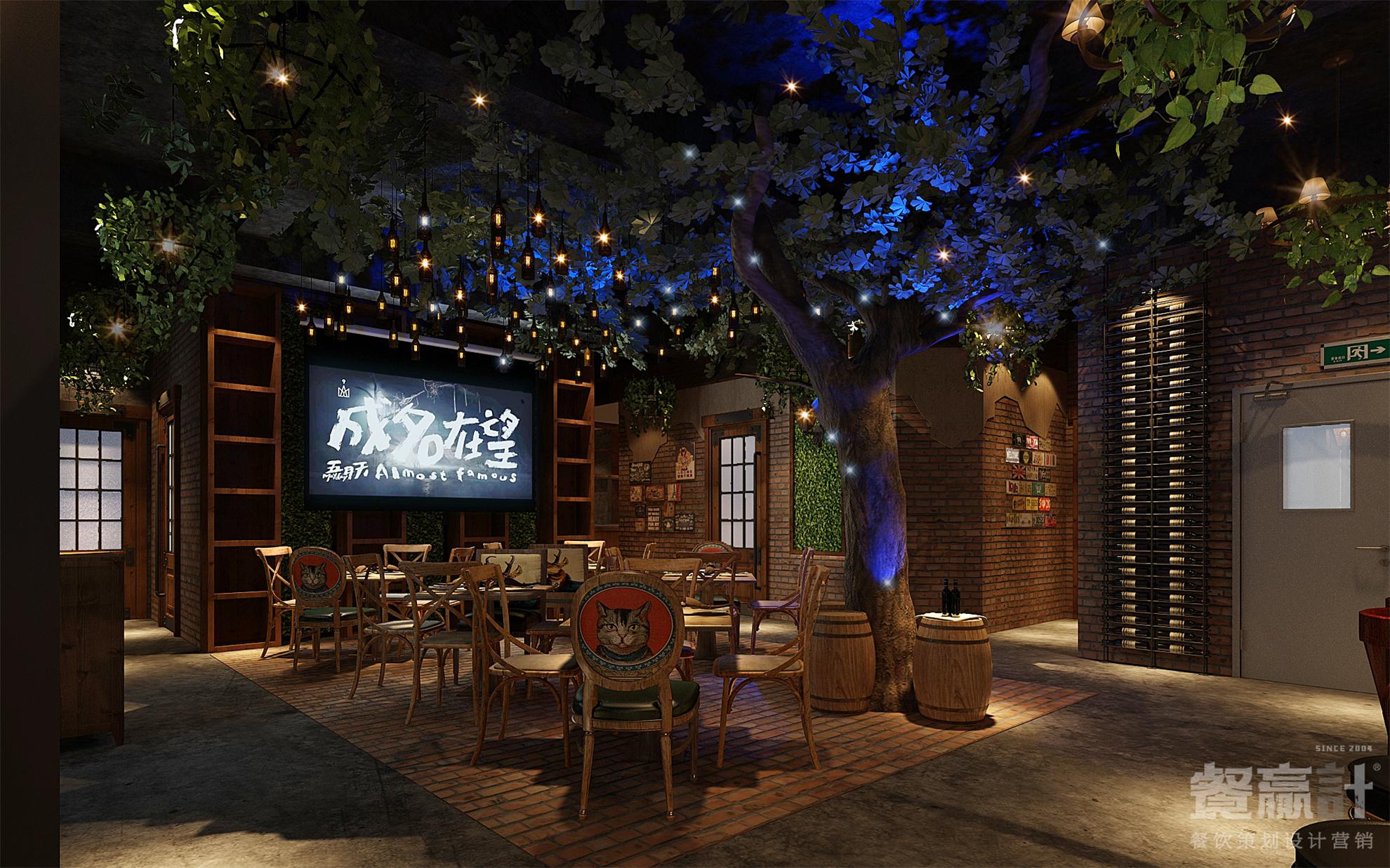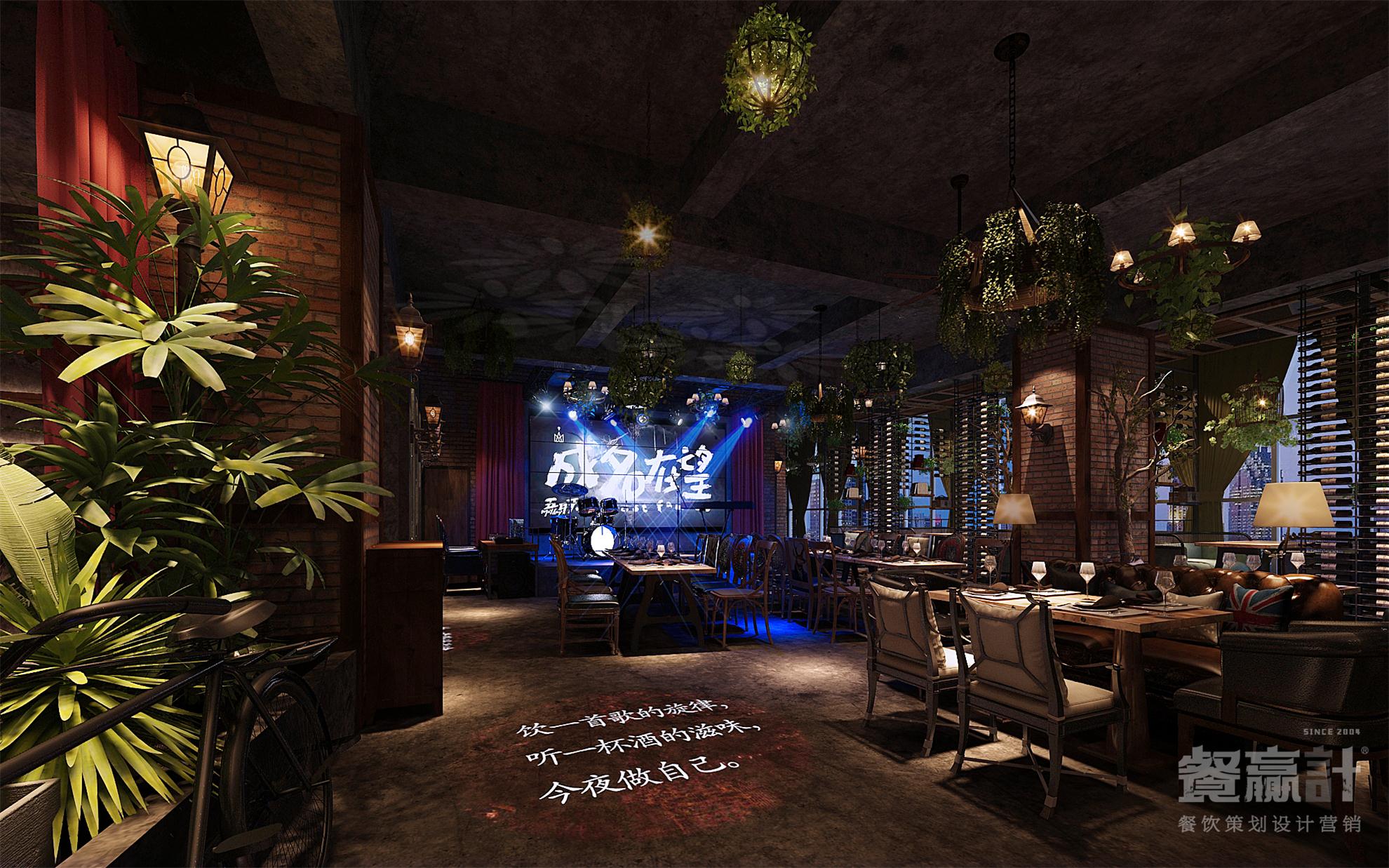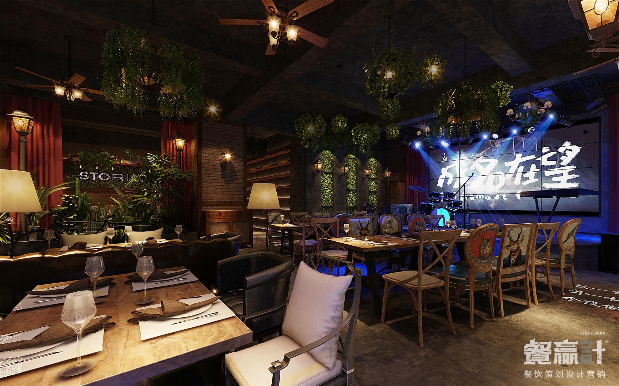 城里故事,是一家与顾客分享生活百味的休闲餐吧,由餐赢计与甲方合作共同创建。品牌发源于东莞企石,用美食、饮品、音乐等元素与个性的文化相结合,建立了别样的餐饮体验空间,让不同的来客和精彩得以聚集。 在餐厅内部,空间以砖墙、水泥地、木器、绿植为主要元素,营造出怀旧的、带感的工业风形象;偏昏暗的环境符合音乐餐吧的属性,结合搭配得当的灯光效果,既可突出餐桌菜肴、驻唱舞台等焦点,也可默默酝酿情调,让每一个角落都能藏得下更多内涵。通过良好的氛围体验,消费者的心就更容易被留住。