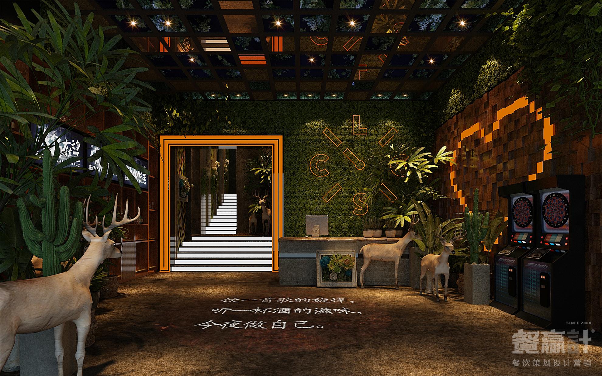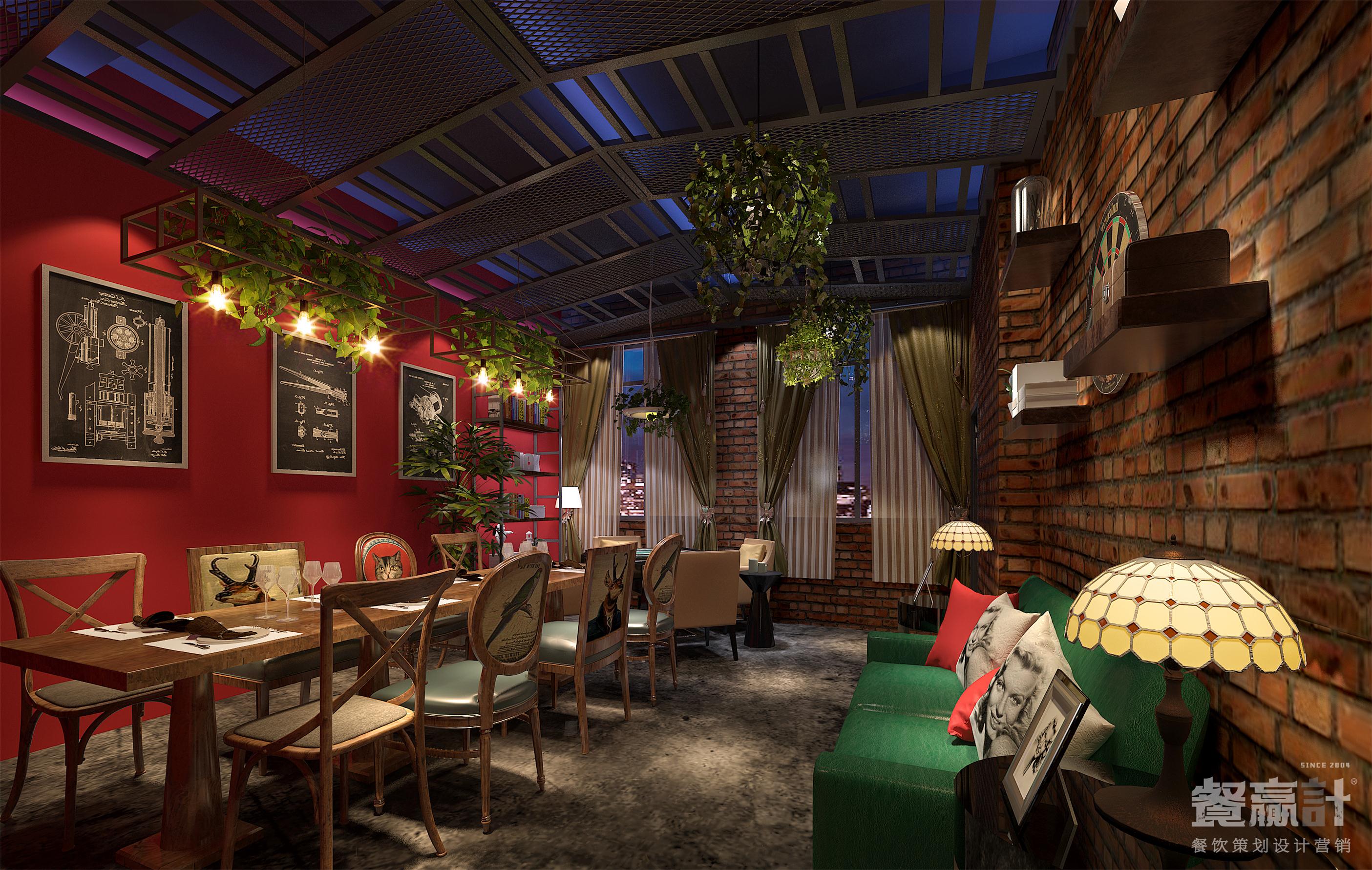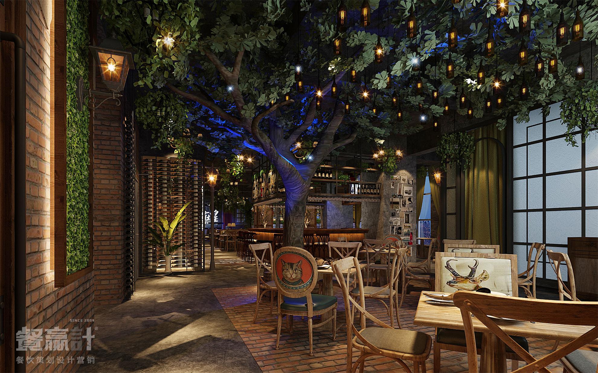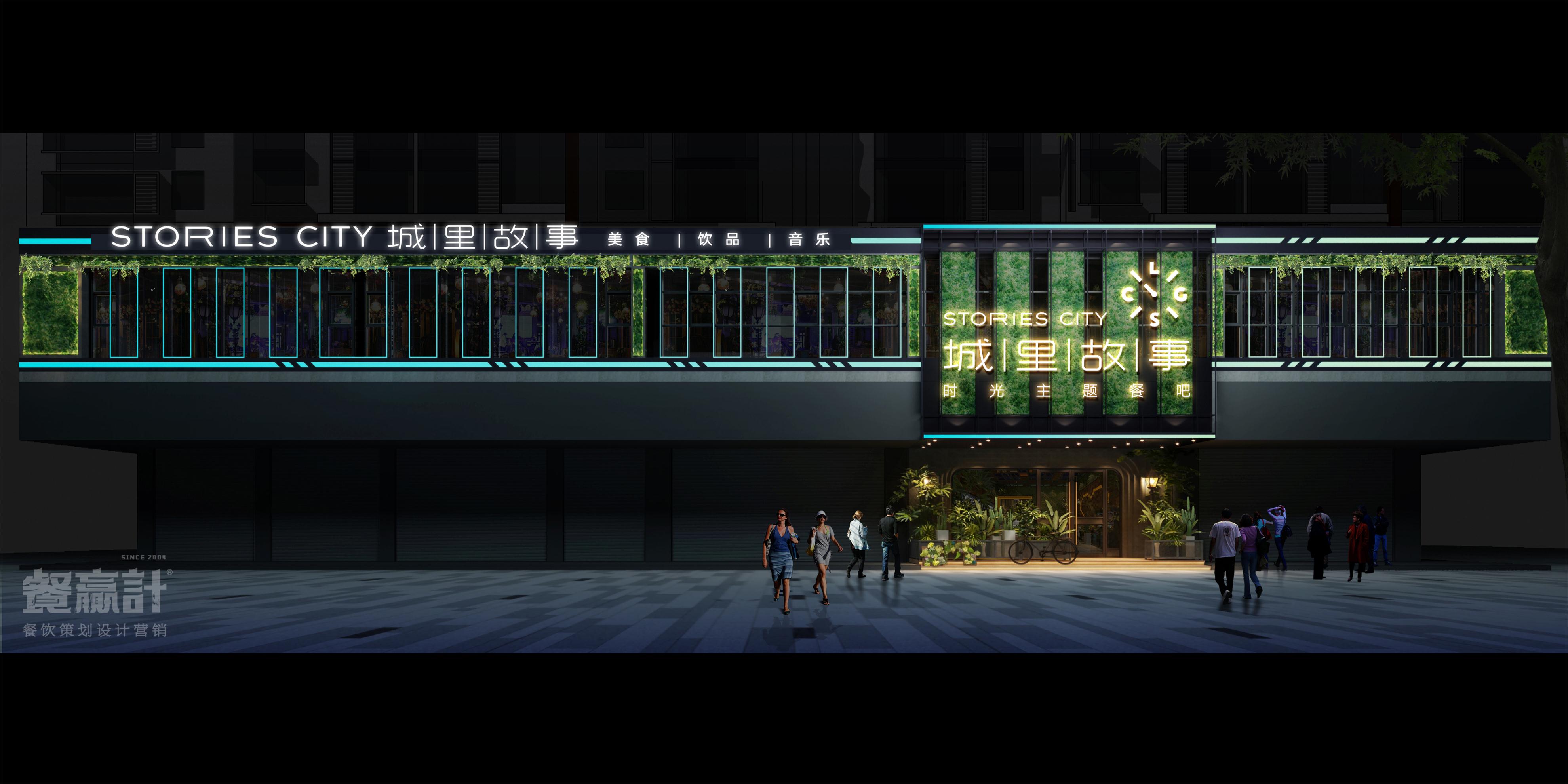 城里故事,是一家与顾客分享生活百味的休闲餐吧,由餐赢计与甲方合作共同创建。品牌发源于东莞企石,用美食、饮品、音乐等元素与个性的文化相结合,建立了别样的餐饮体验空间,让不同的来客和精彩得以聚集。 在餐厅内部,空间以砖墙、水泥地、木器、绿植为主要元素,营造出怀旧的、带感的工业风形象;偏昏暗的环境符合音乐餐吧的属性,结合搭配得当的灯光效果,既可突出餐桌菜肴、驻唱舞台等焦点,也可默默酝酿情调,让每一个角落都能藏得下更多内涵。通过良好的氛围体验,消费者的心就更容易被留住。